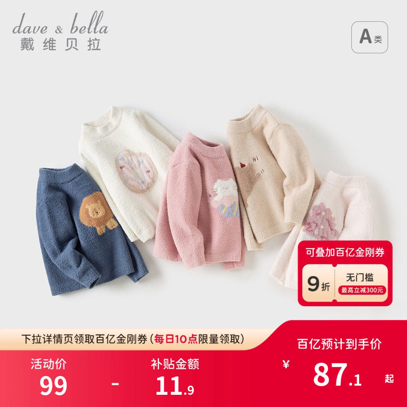 戴维贝拉儿童雪尼尔毛衣2025新款男女童冬季款内搭宝宝套头针织衫