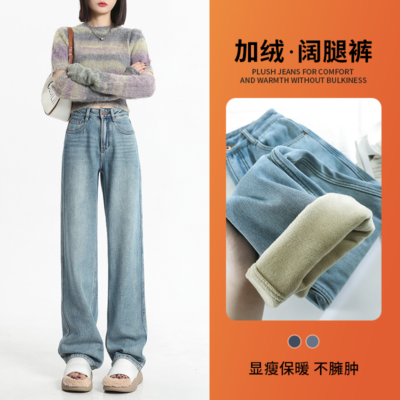阔腿裤女2025新款秋冬款爆款冬季加绒加厚裤子高腰直筒宽松牛仔裤