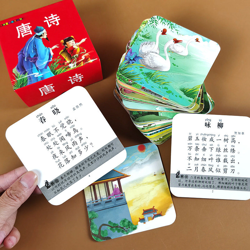 唐诗卡幼儿早教背诵启蒙绘本宝宝儿童早教认知识图卡片古诗撕不烂