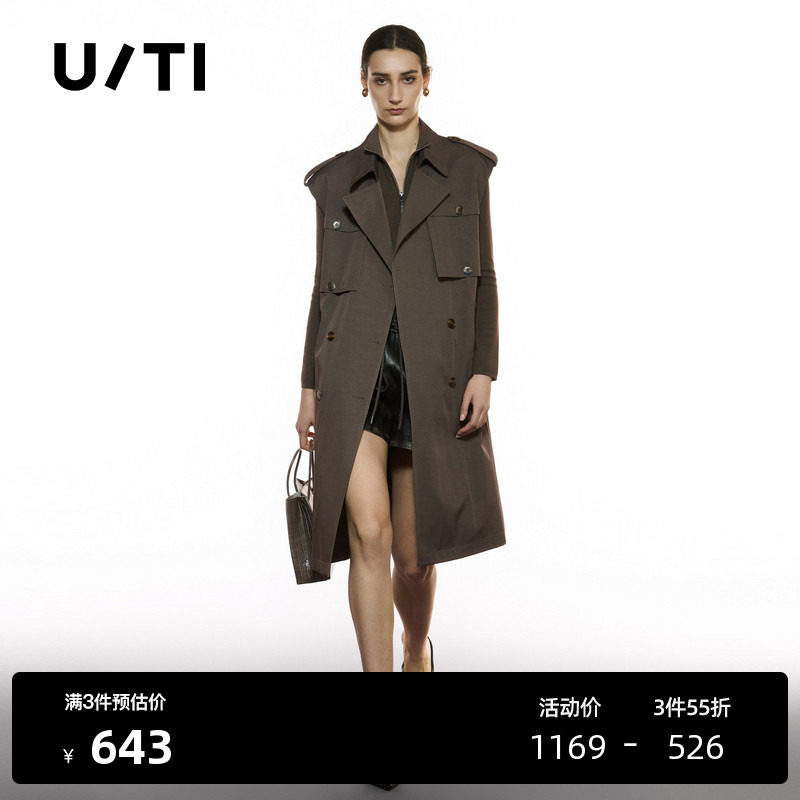 U/T军绿色长款风衣马夹女装 设计感通勤无袖外套尤缇2025秋季新款