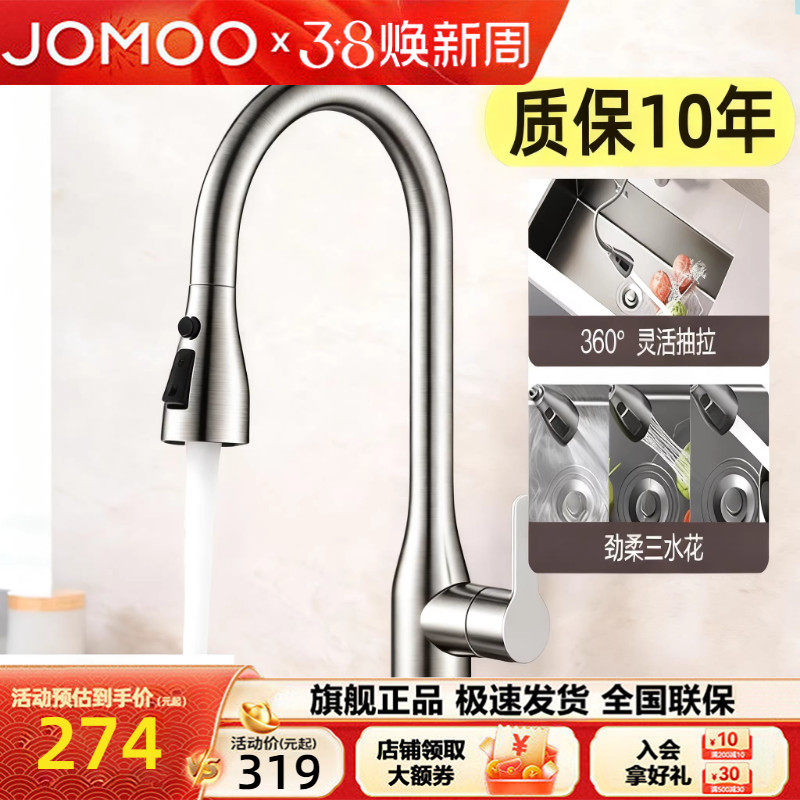 JOMOO九牧卫浴304不锈钢厨房冷热水龙头家用洗菜盆龙头水槽洗碗池