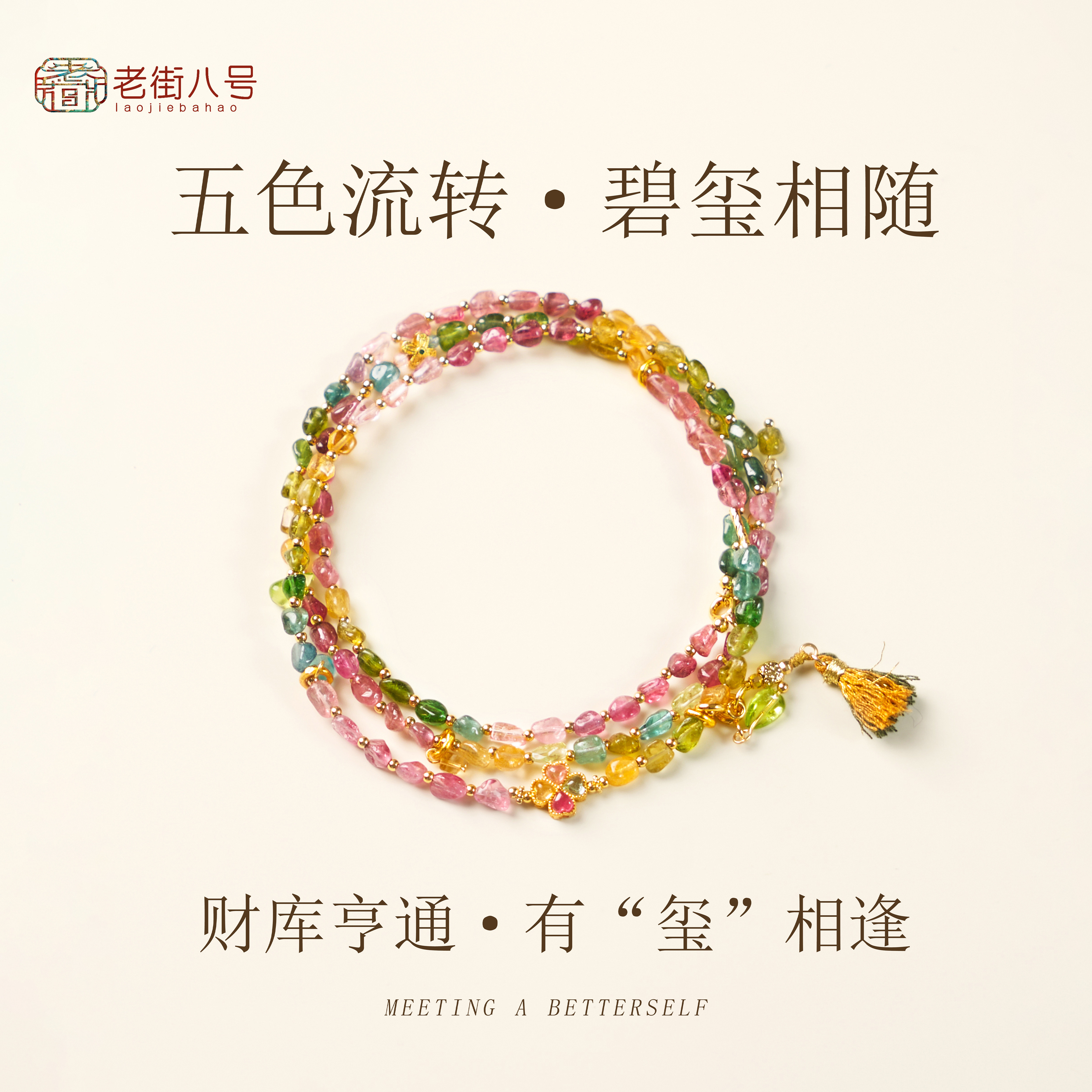 宫里上新碧玺手串女正品三圈小米珠彩虹天然水晶手链生日礼物女生