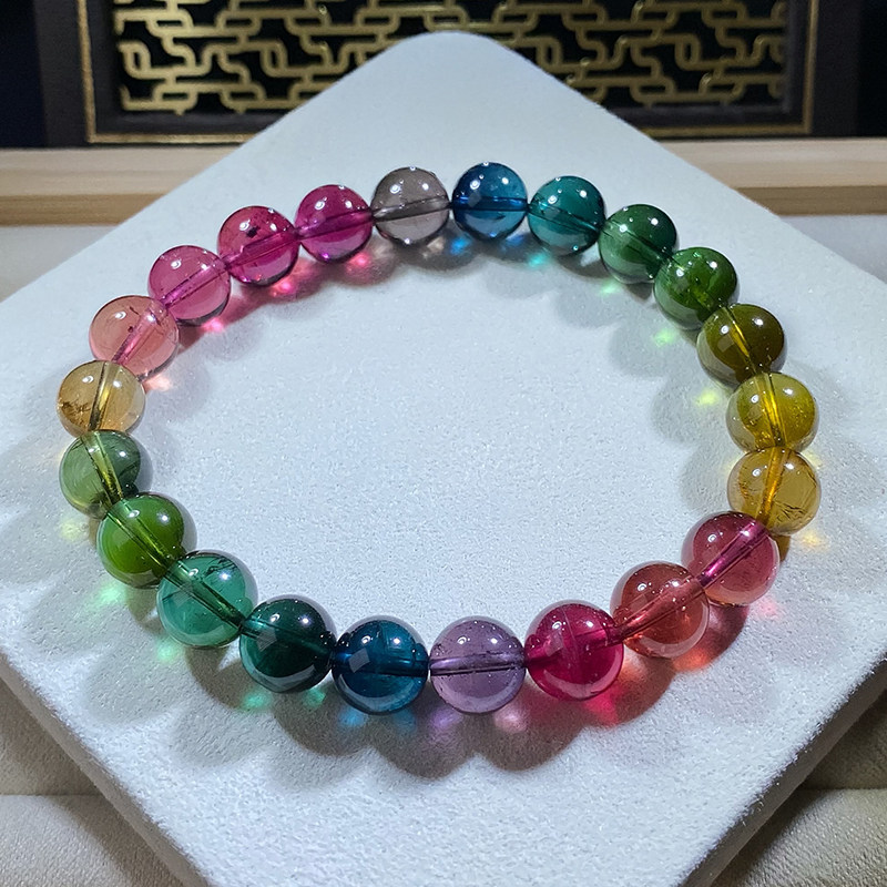 天然碧玺回纹珠单圈手链巴西彩虹糖果色老矿碧玺桶珠送礼情侣饰品