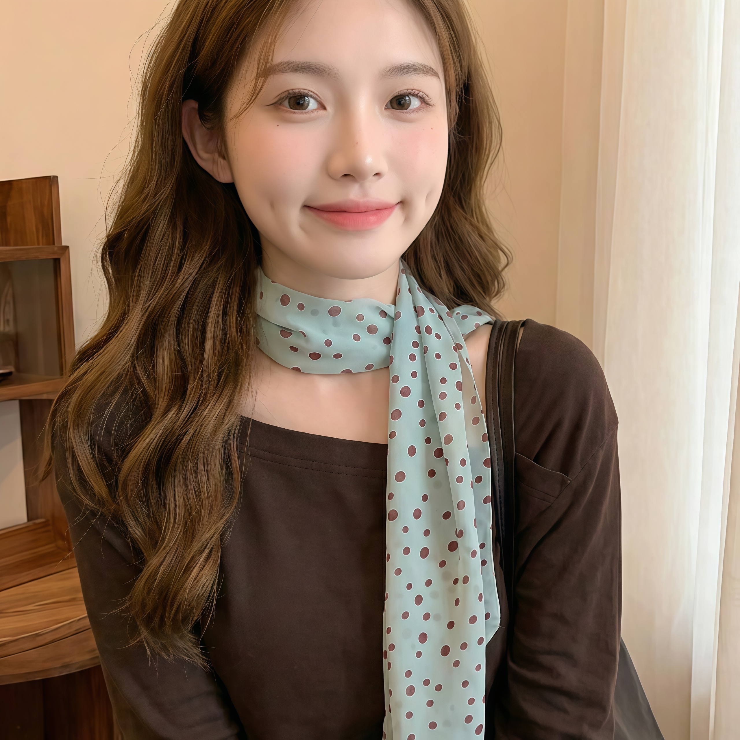韩版波点长方形丝巾女春秋百搭装饰围巾时尚围脖高级感系脖领巾潮