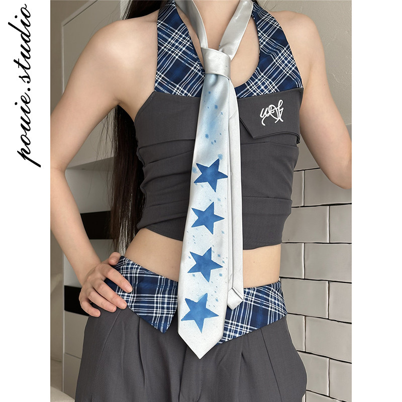 韩版ins可爱星星渐变印花领带女春夏新款甜美百搭装饰免打结领巾