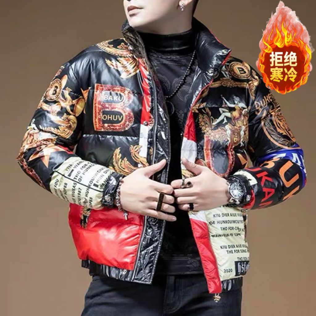 欧洲站高端印花羽绒服男潮牌爆款帅气男士冬季加厚保暖外套短款潮