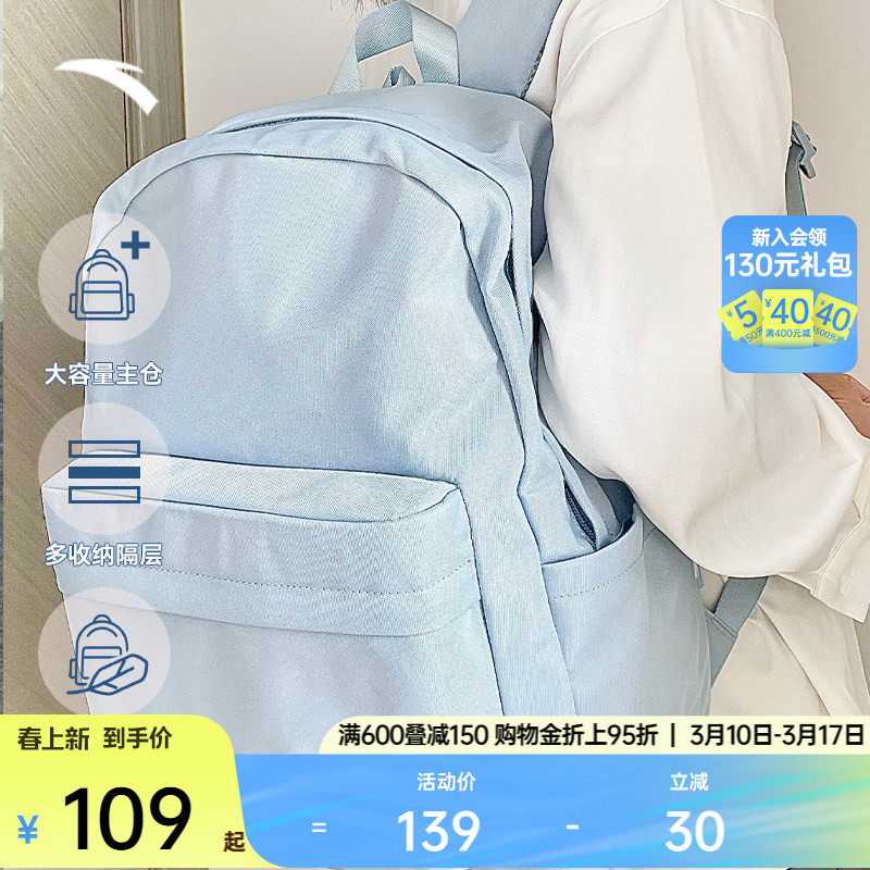 安踏双肩包学霸包学生电脑包中学生大学生大容量背包书包初中女生