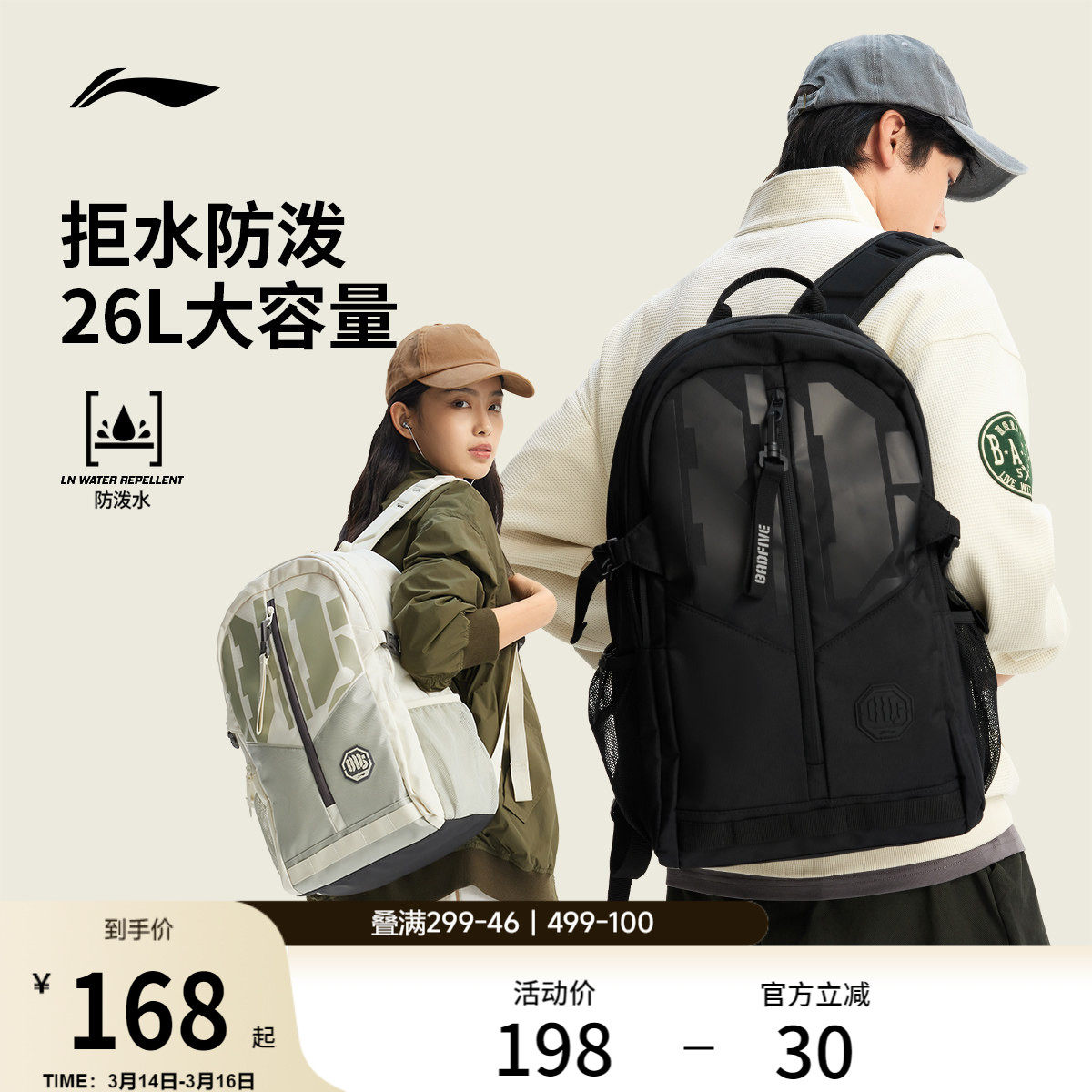 李宁双肩包女书包男士初高中学生大容量户外旅行2026新款运动背包