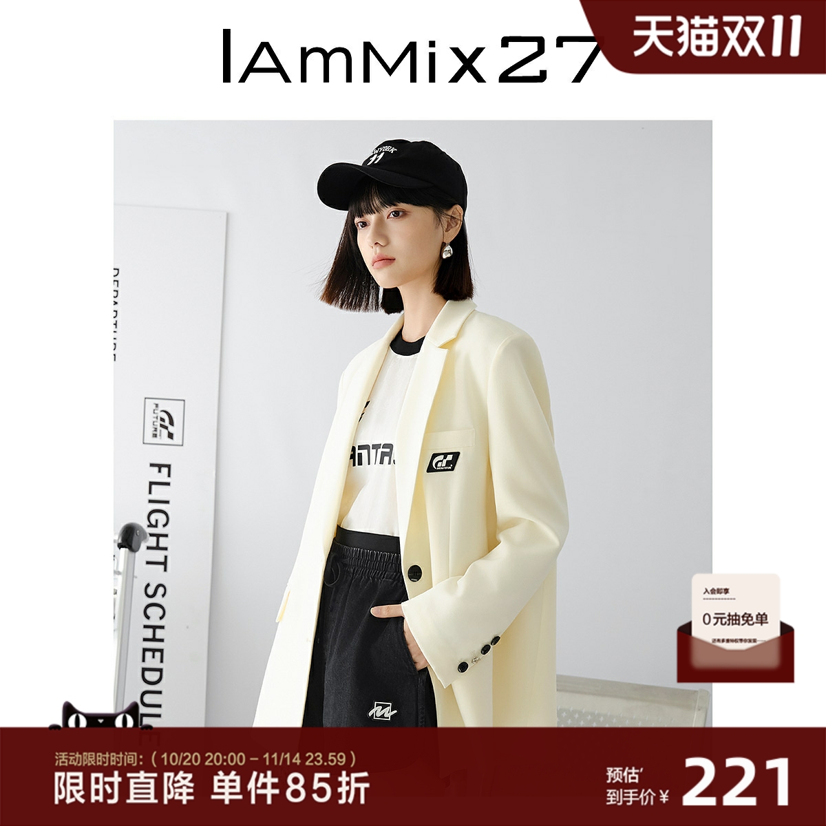 IAmMIX27春秋米白色西服外套女宽松大廓形简约通勤休闲百搭小西装