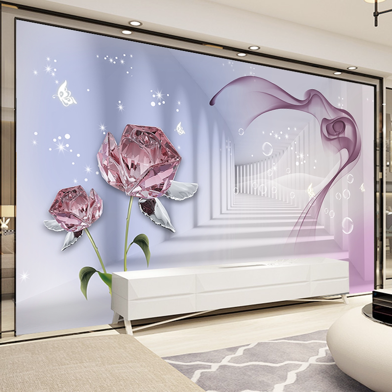 3d立体荷花墙贴画卧室客厅电视背景墙壁纸玄关墙面装饰品墙纸花朵