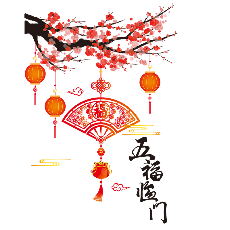 吉祥如意自粘墙贴画梅花中国风客厅卧室玄关电视背景装饰贴画过年
