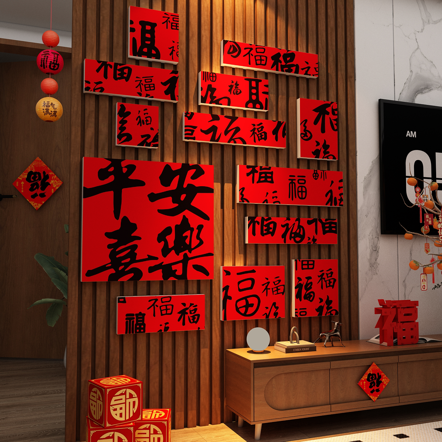 2026新款玄关客厅大白电视机背景墙面福字装饰墙贴画自粘氛围挂件
