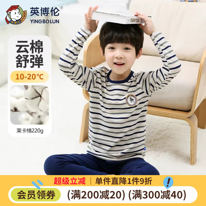 英博伦儿童内衣套装纯棉男童秋衣秋裤全棉小男孩睡衣中大童棉毛衫