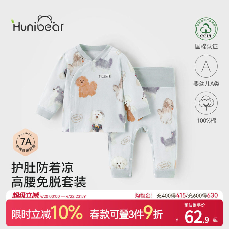 婧麒新生婴儿衣服纯棉春秋初生男女宝宝秋冬睡衣分体打底内衣套装