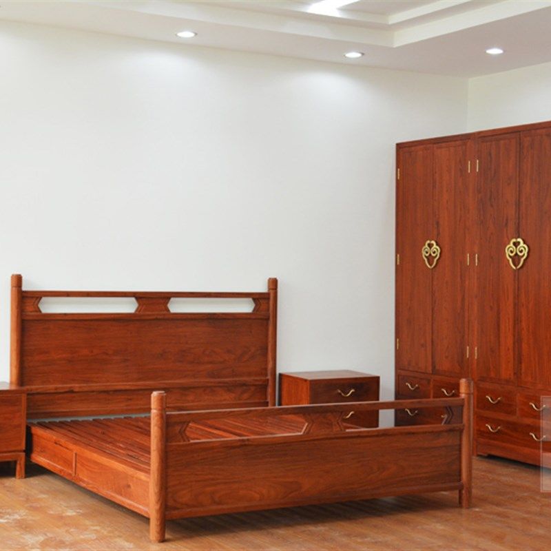中式家具成套床1.8米床头柜衣柜被柜组合实N木 卧室家具组合套装