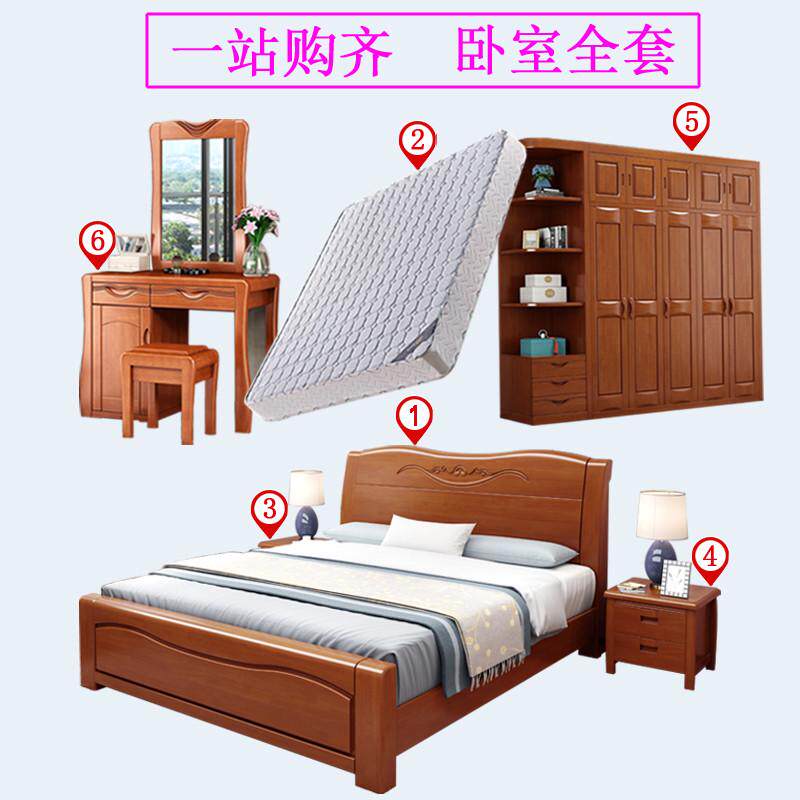 卧室家具套装组合床衣柜梳妆台婚房主卧全屋成套中式实木家私全套