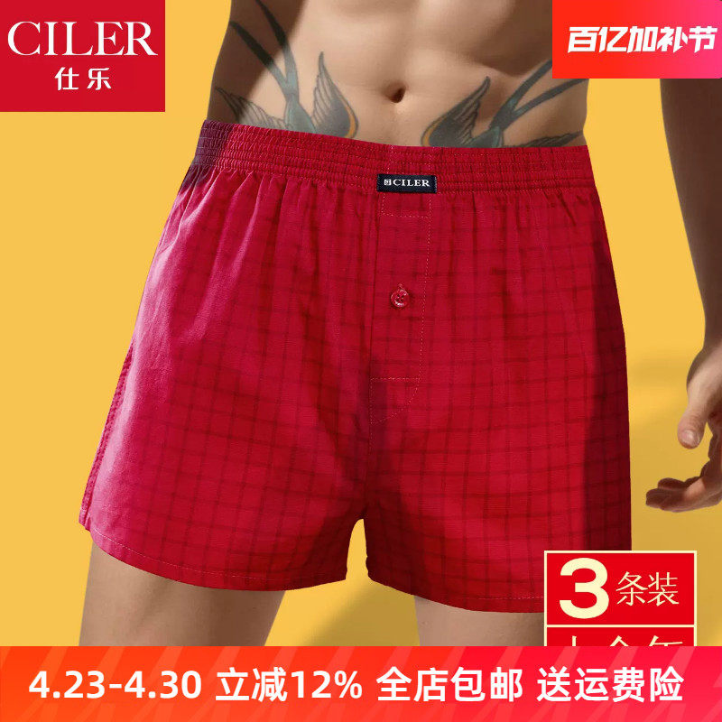 3条仕乐纯棉男士内裤平角裤宽松阿罗裤大红色本命年大码四角马年