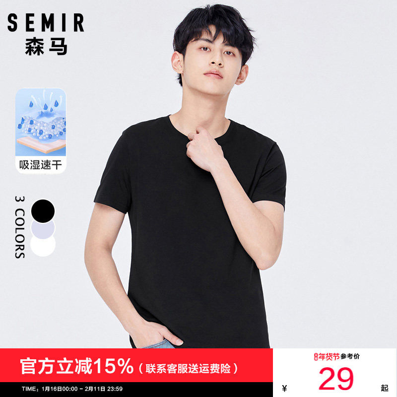森马短袖T恤男2025夏季新款男士纯色基础简约修身打底衫黑色半袖