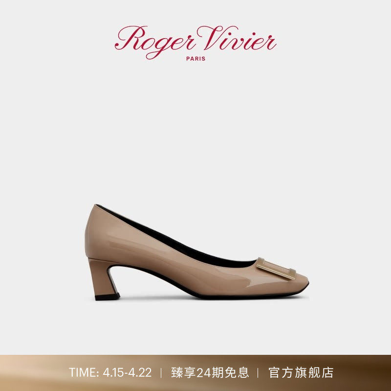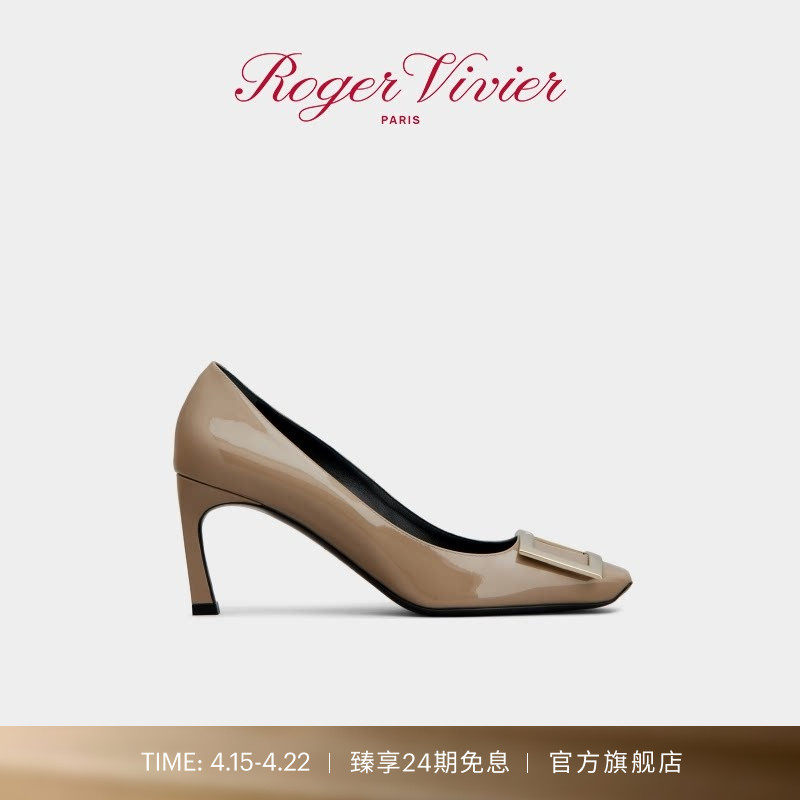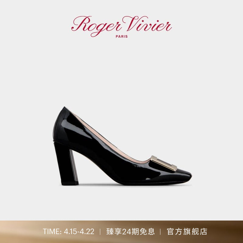 Roger Vivier/RV女鞋Belle Vivier漆皮方扣高跟鞋浅口单鞋