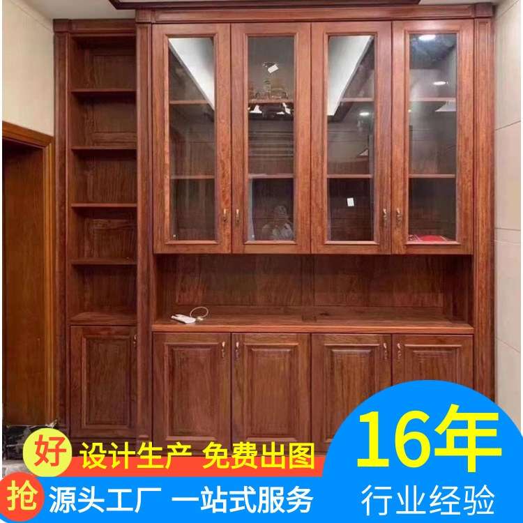 博古架 实木大板巴花博古架 原木储物架 实木展示柜 茶桌背储茶柜