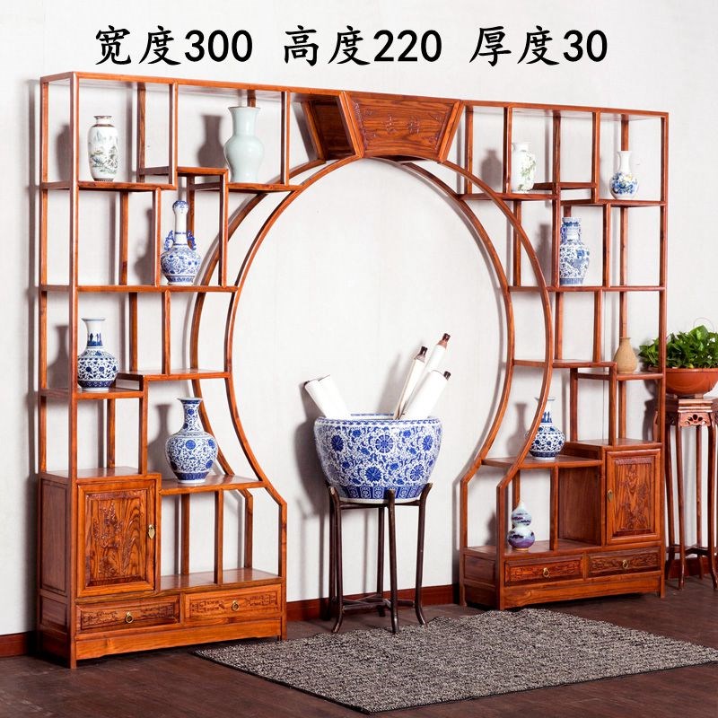 红木家具鸡翅木博古架 实木中式多宝阁茶叶架客厅玄关隔断置物架