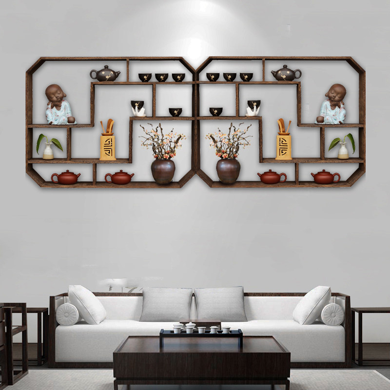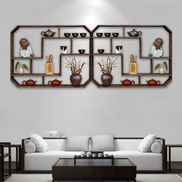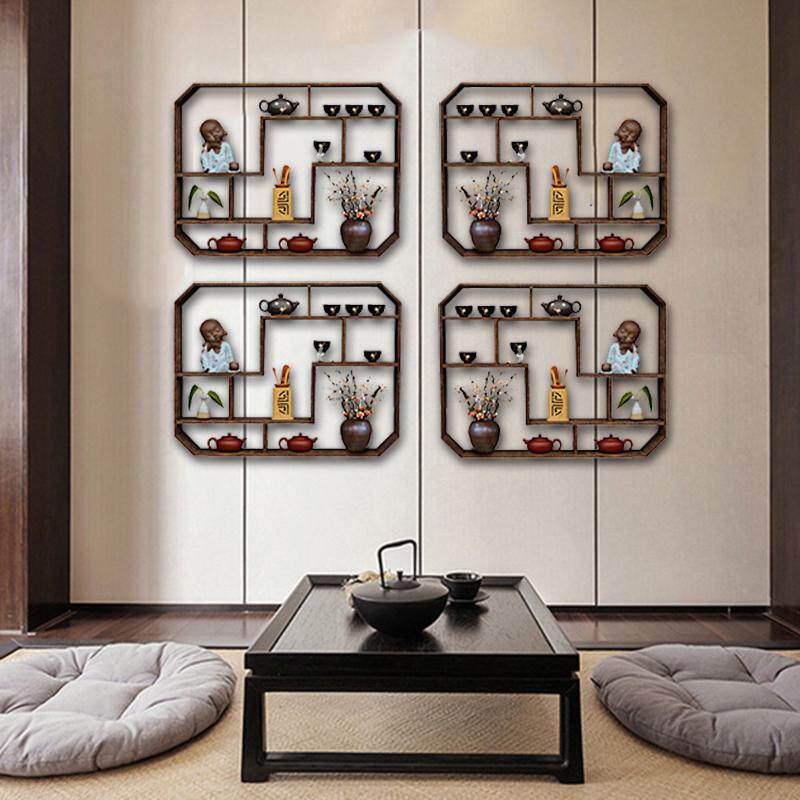 客厅茶具架摆件禅意博古架 实木 中式简约现代茶杯架挂墙壁挂隔断
