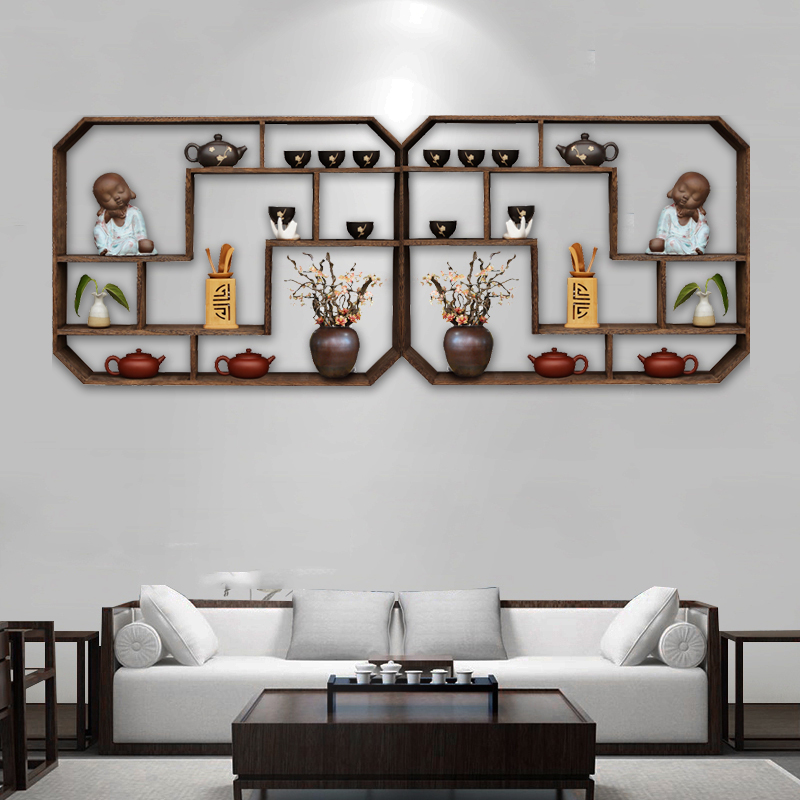 挂墙 博古架 实木 中式 多宝阁 壁挂 墙上 置U物架 装饰 茶架