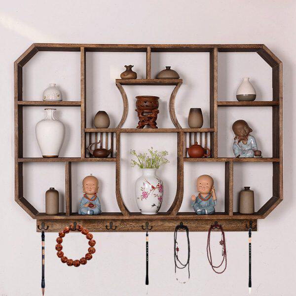 挂墙 博古架 实木 中式 w多宝阁 壁挂 墙上 置物架 装饰 茶架
