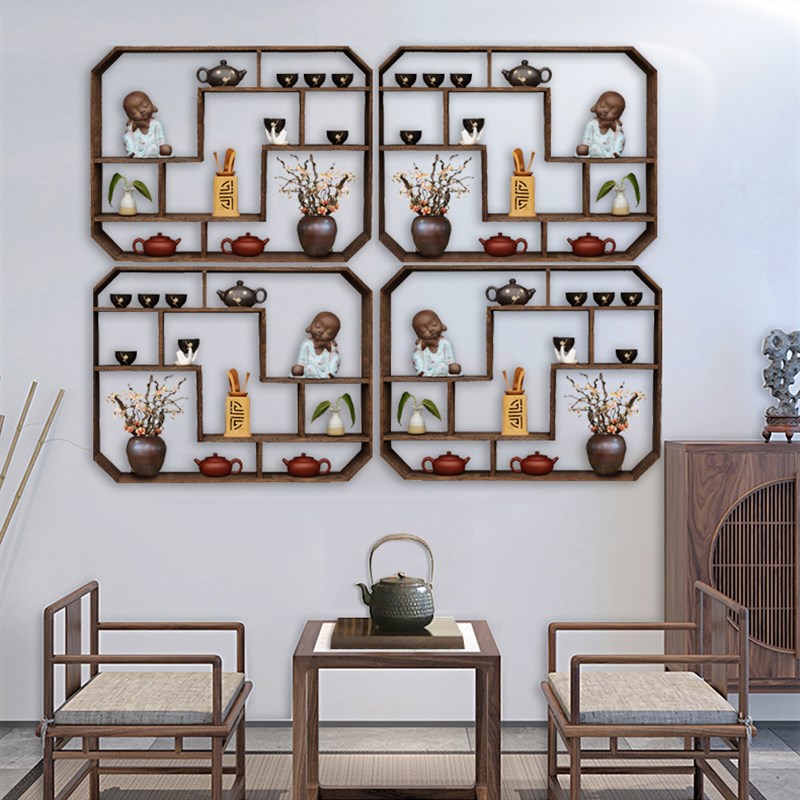 博古架 实木中式 壁挂式 多宝阁挂墙 茶叶架子 展示架 置物架墙上