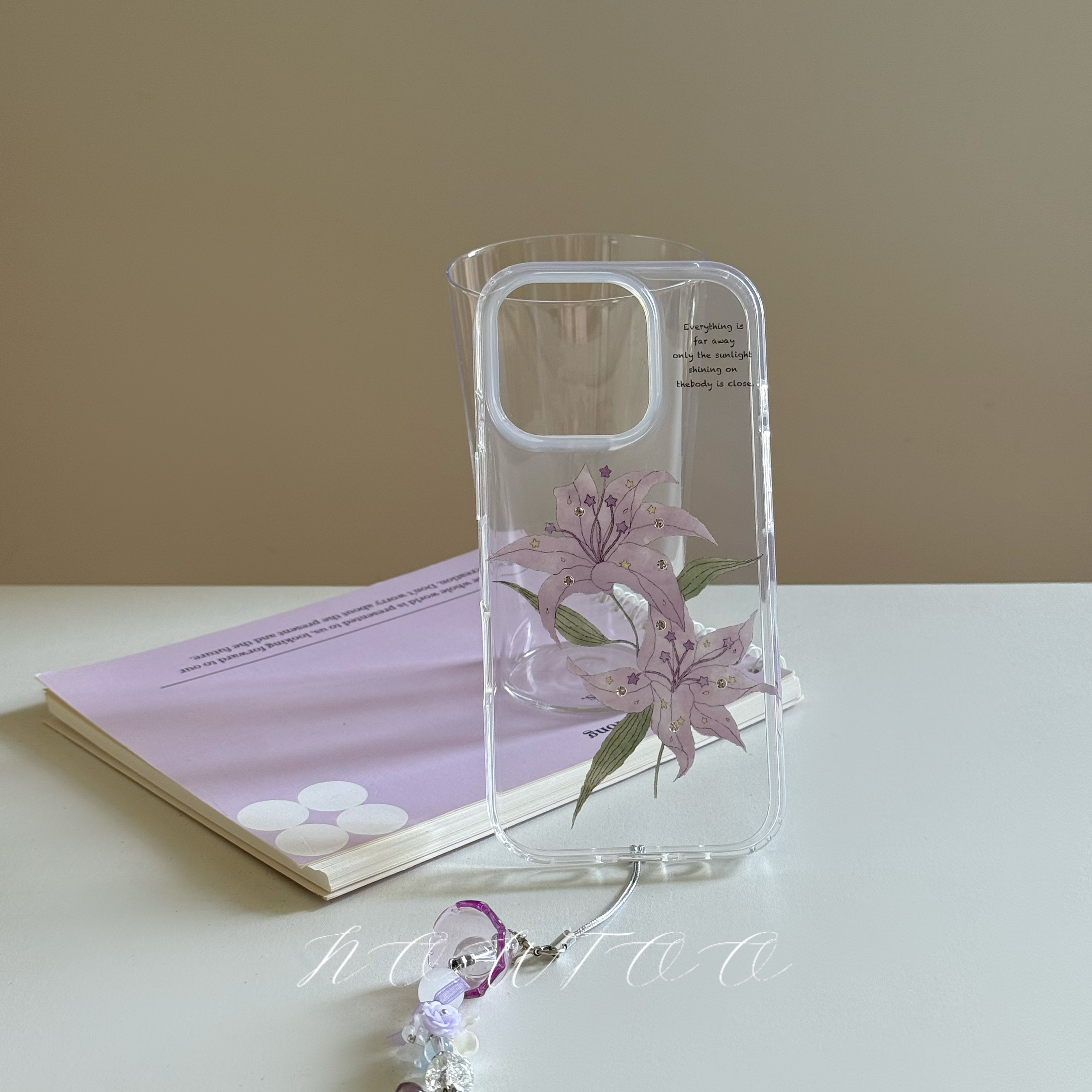 nowtoo原创透明紫色钻石百合花双层imd亮面苹果iphone手机壳新款2025网红爆款独特好看14/15/16/17promax适用