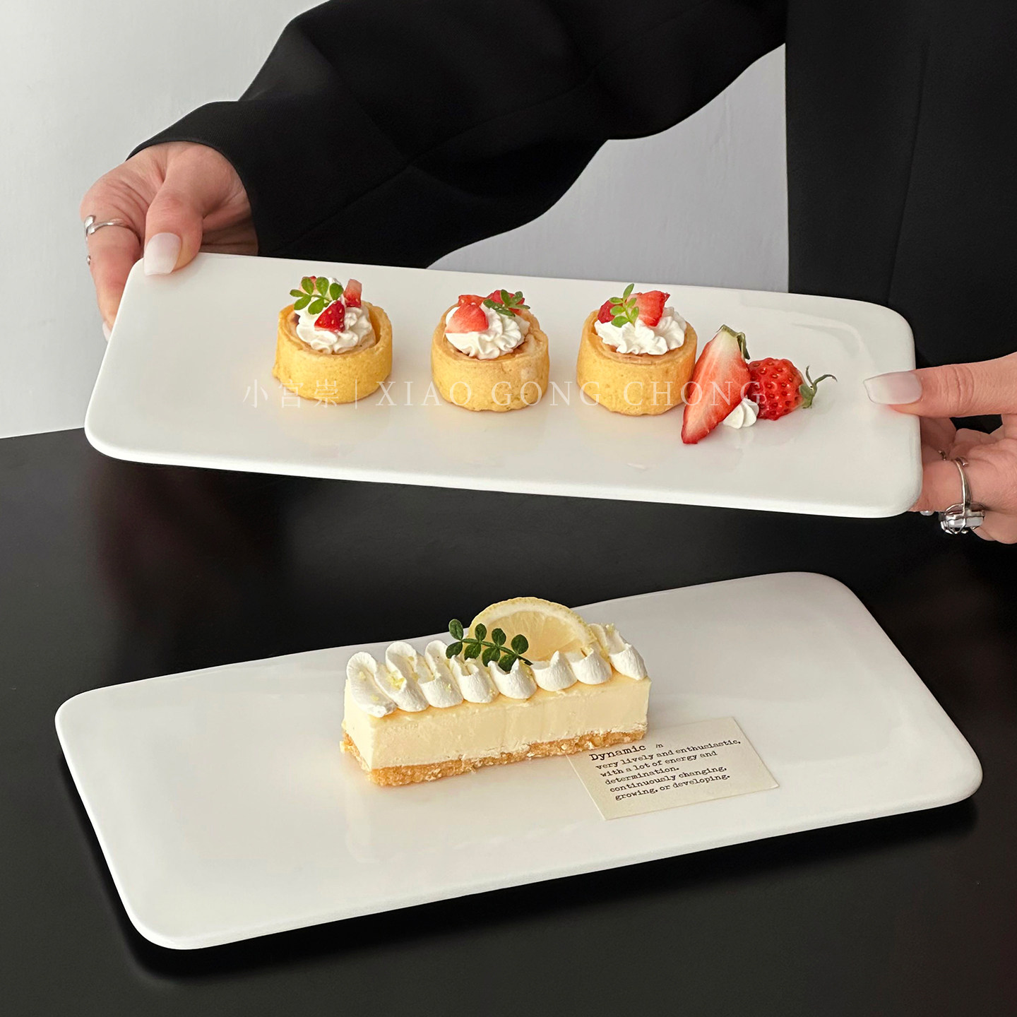 纯白陶瓷甜品盘高级感长方平板盘创意下午茶蛋糕盘点心盘寿司盘子