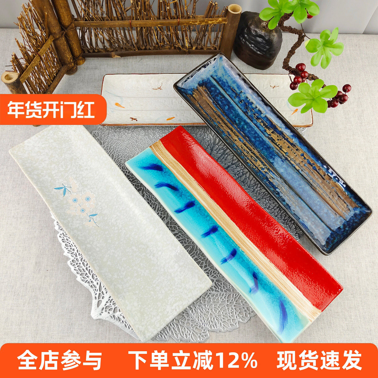 日式窑变陶瓷寿司盘子长方盘创意西餐鱼盘甜点盘点心盘家用微瑕疵