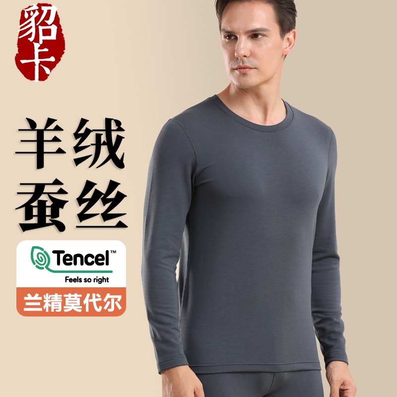 羊绒蚕丝莫代尔秋衣秋裤套装男保暖内衣薄款秋冬男加绒上衣打底衫