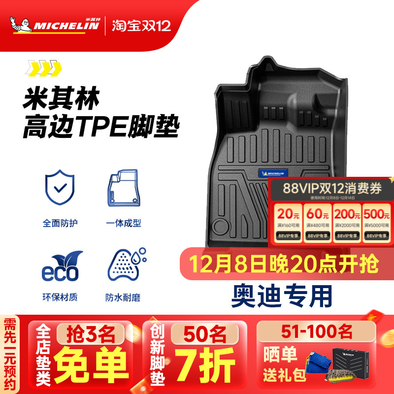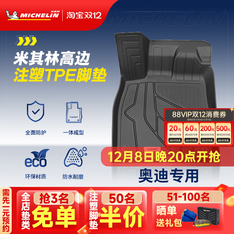 米其林全TPE汽车脚垫适用奥迪A3 A3L A4L A6L Q5L Q3 Q6L专用脚垫