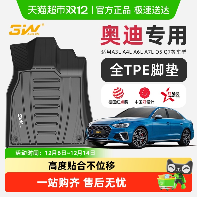奥迪A6L/Q5L/A4L/A3/Q3/Q4/A6汽车全包围TPE脚垫实用配件用品大全