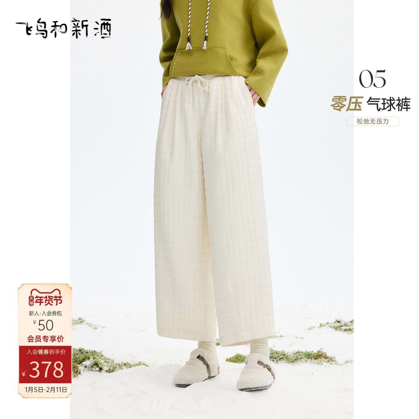 飞鸟和新酒宽松绗棉白色系带萝卜裤女2025冬季新款保暖休闲裤女裤