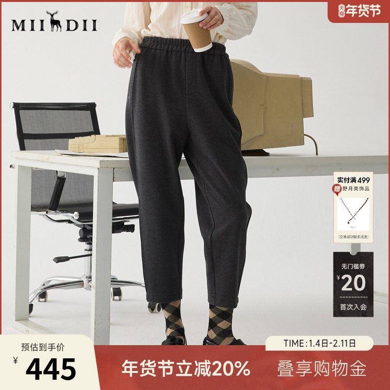 谜底萝卜裤女冬季新品简约百搭松紧腰九分裤休闲裤244MK1478