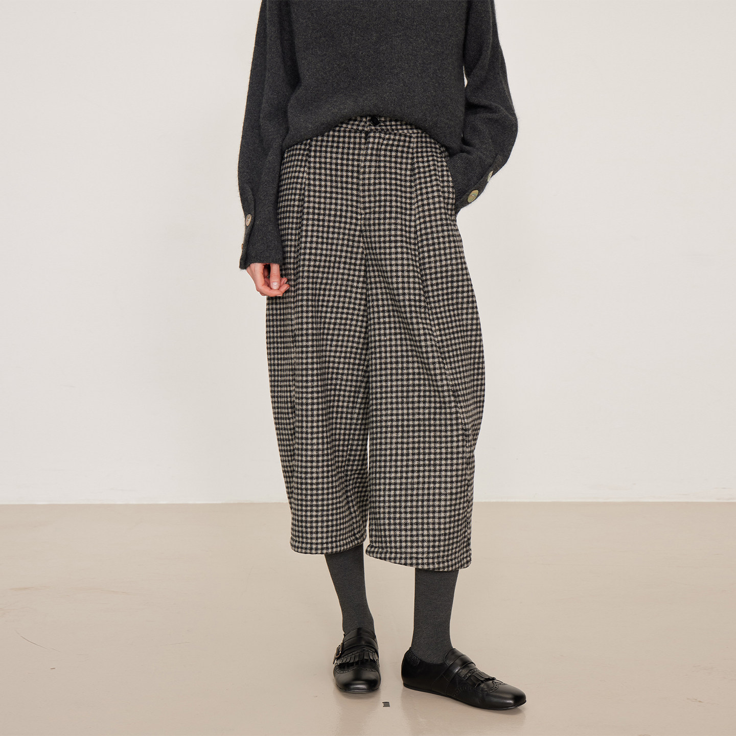 NANCYLILI25冬季新品黑白格子九分阔腿裤加厚气球休闲裤萝卜裤女