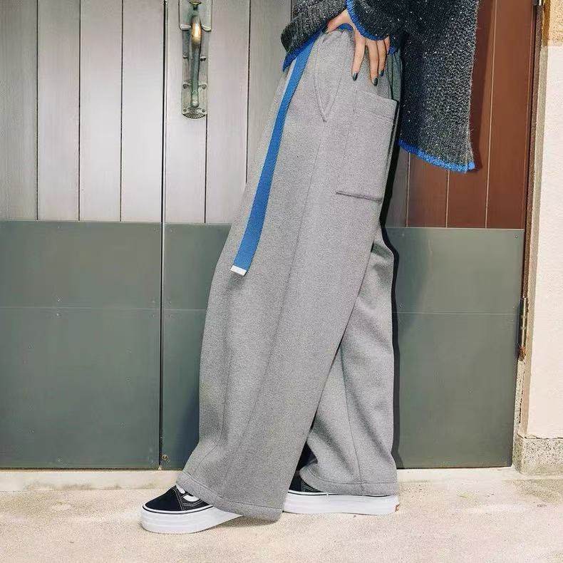 韩国e*g 梨形情裤!厚实毛呢阔腿裤子九分直筒奶奶裤休闲萝卜裤女
