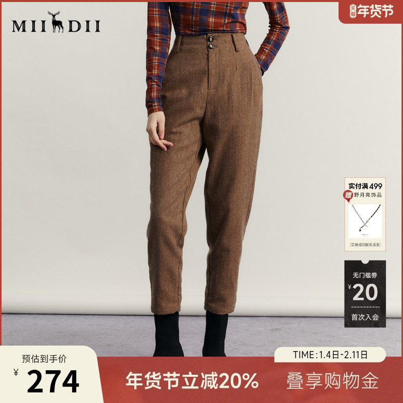 谜底毛呢萝卜裤女士冬季新品复古百搭保暖九分裤女234MK1529