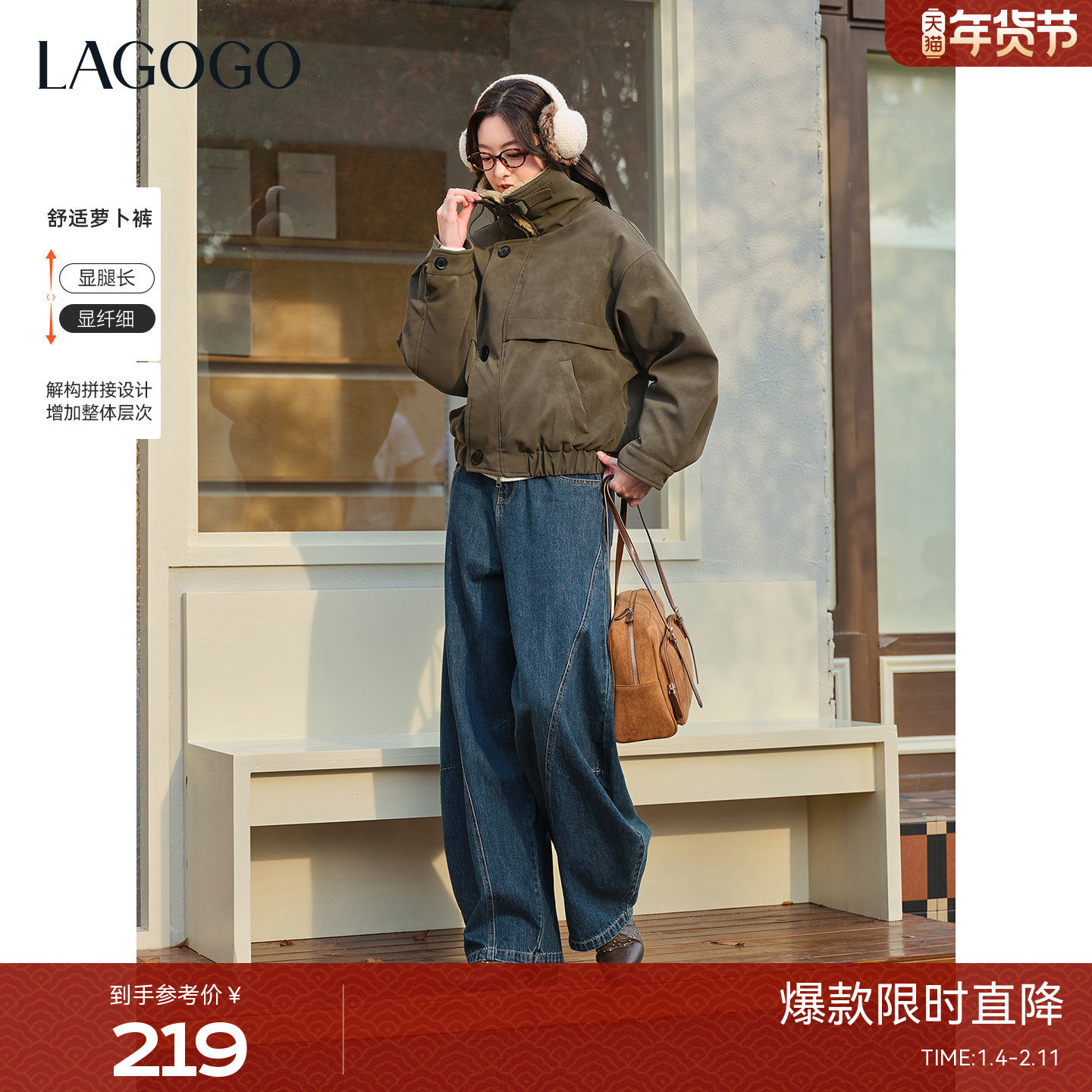 LAGOGO包容显瘦弯刀裤阔腿牛仔萝卜裤女拉谷谷2025年冬季新款长裤