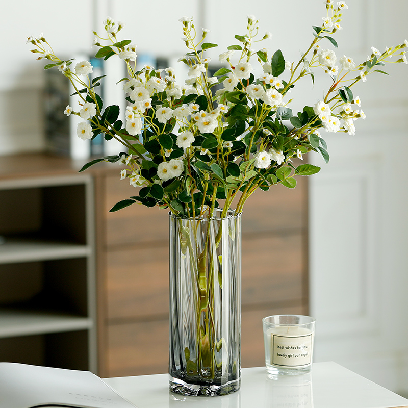简约高级感玻璃花瓶摆件水培吊钟雪柳马醉木客厅鲜花插花落地装饰