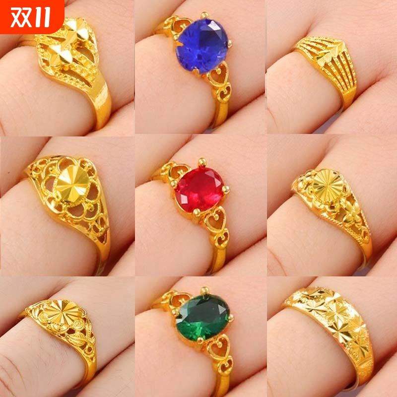 新款正品沙金戒指女黄金色戒指女士指环活口妈妈款结婚送礼不掉色