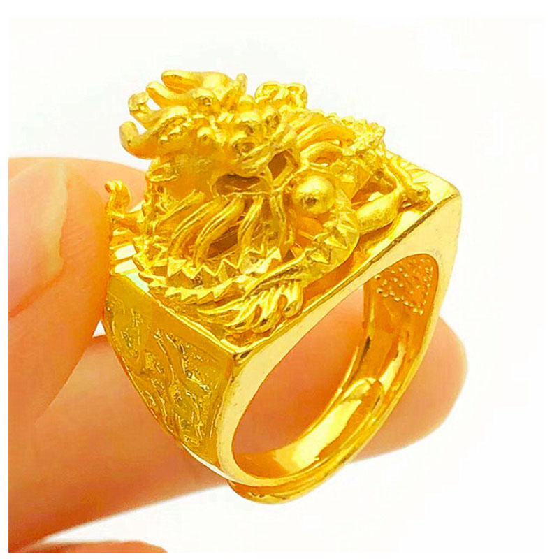 越南沙金戒指男士999正品24K镀黄金龙头霸气活口指环久不掉色首饰