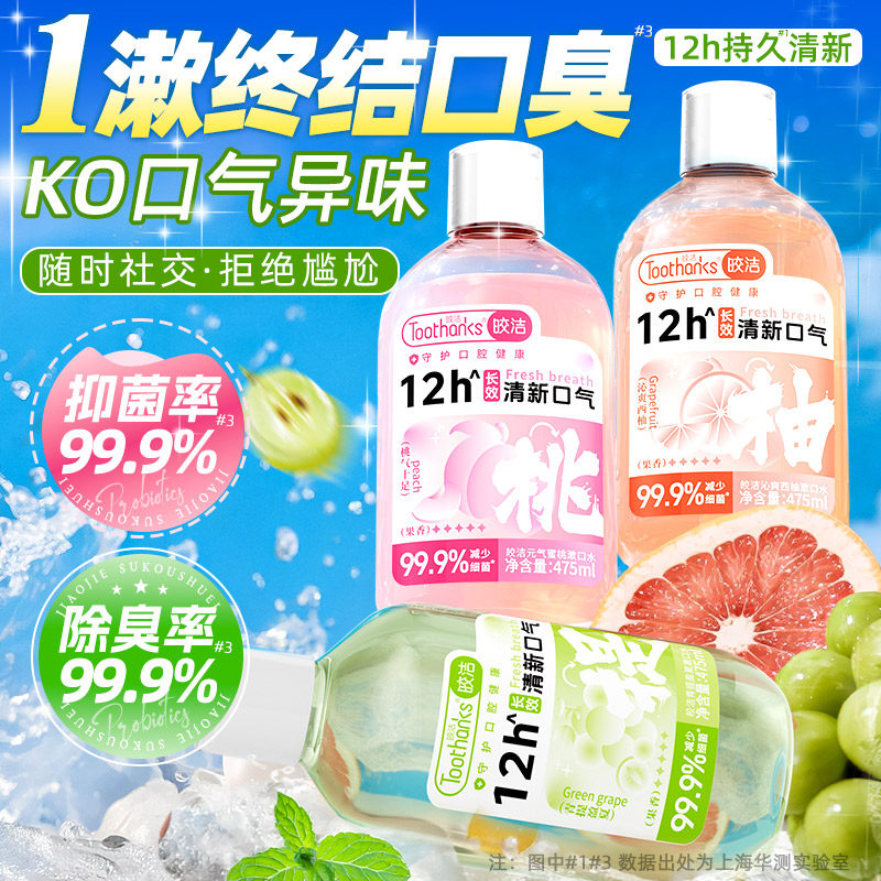 皎洁益生菌漱口水杀菌除口腔臭气持久留香清新簌无酒精抑菌含涑液