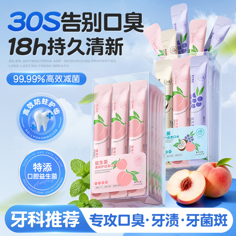 益生菌漱口水杀菌除口臭持久留香便携一次性小包装清新口气牙结石