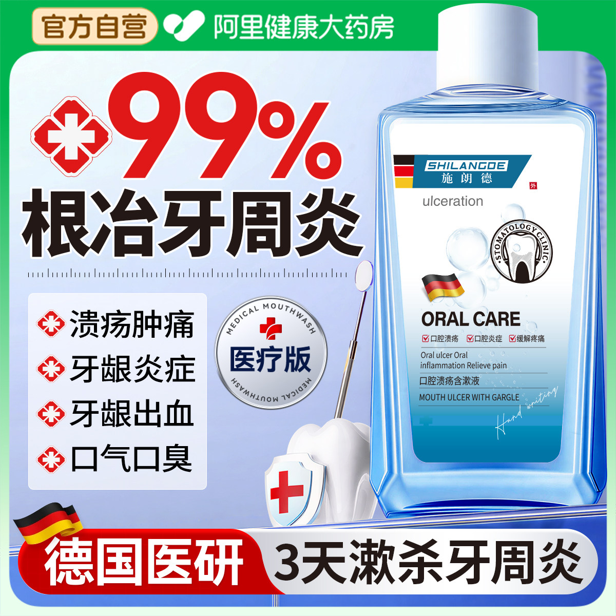 医用漱口水杀菌除口臭持久留香消炎牙周炎牙结石牙龈口腔修复正品