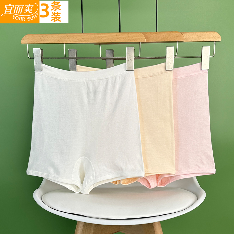 3条宜而爽女士纯棉内裤高腰平角短裤中老年大码宽松全棉女平口裤