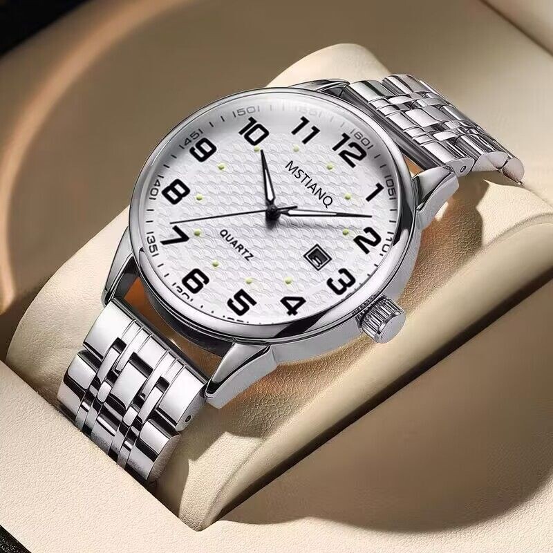 男士商务石英手表全自动防水青中老年学生百搭超薄款钢带腕表夜光