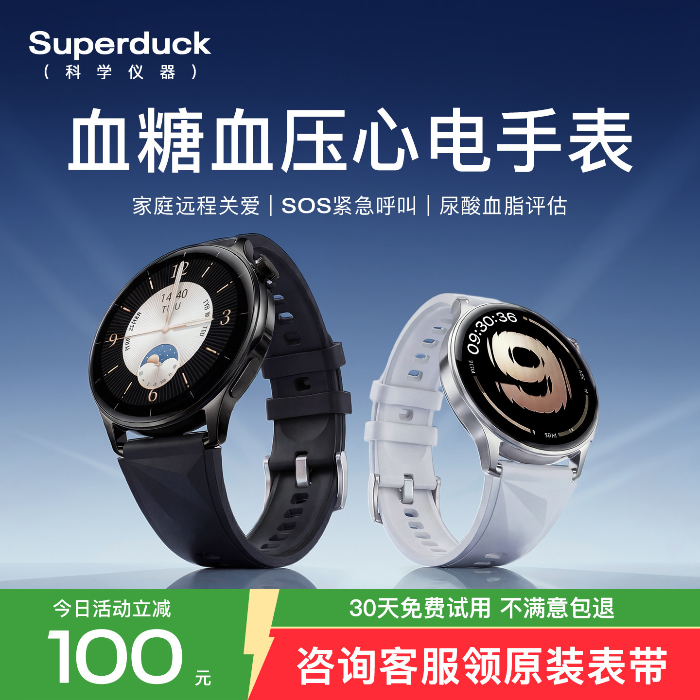 【政府补贴15%】Superduck血糖血压心电健康高精度睡眠健康尿酸血脂心率智能手表血氧手环监测量仪老人男女款